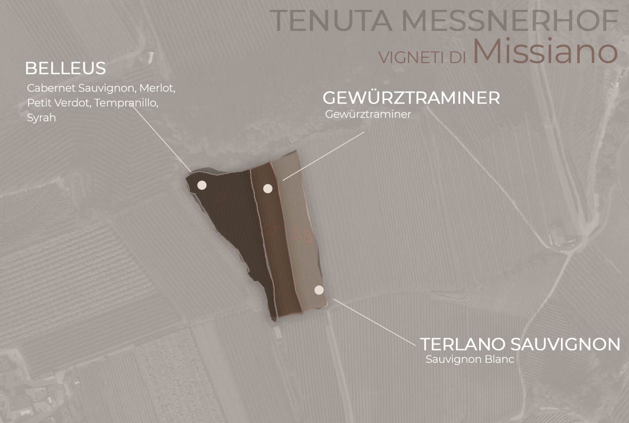 Il vigneto si trova nel Comune di Appiano fra le località di San Paolo e Missiano. Questa zona viene soprannominata “Specchio”. Il pendio esposto ad est ha una superficie di circa 0,8 ettari e si trova a 400 m di altitudine. Il terreno, composto da pietrisco di calcio argilloso, ha una buona permeabilità ed è ricco di sali minerali.